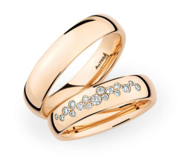 Ob Sie Eheringe bei Juwelieren einzeln anfertigen lassen, oder sich für vorgefertigte Eheringe entscheiden, sollten die Eheringe optisch wie auch materiell zueinander passen. Der breitere Trauring des Bräutigams fällt dabei in der Regel etwas dezenter und schlicht aus, der etwas schmalere Trauring der Braut hingegen kann mit funkelnden Diamanten verziert sein.