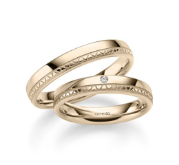 Ob Sie Eheringe bei Juwelieren einzeln anfertigen lassen, oder sich für vorgefertigte Eheringe entscheiden, sollten die Eheringe optisch wie auch materiell zueinander passen. Der breitere Trauring des Bräutigams fällt dabei in der Regel etwas dezenter und schlicht aus, der etwas schmalere Trauring der Braut hingegen kann mit funkelnden Diamanten verziert sein.
